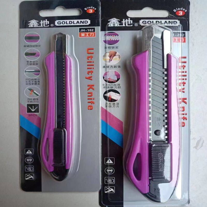 刀身ABS材质,经久耐用,0.8mm加厚不锈钢内胆,强度更佳,不易变形。刀身侧面凹槽设计树干舒适,不易打滑。双排自动锁定,承重力超强。刀片悬浮设计,不伤刀刃。