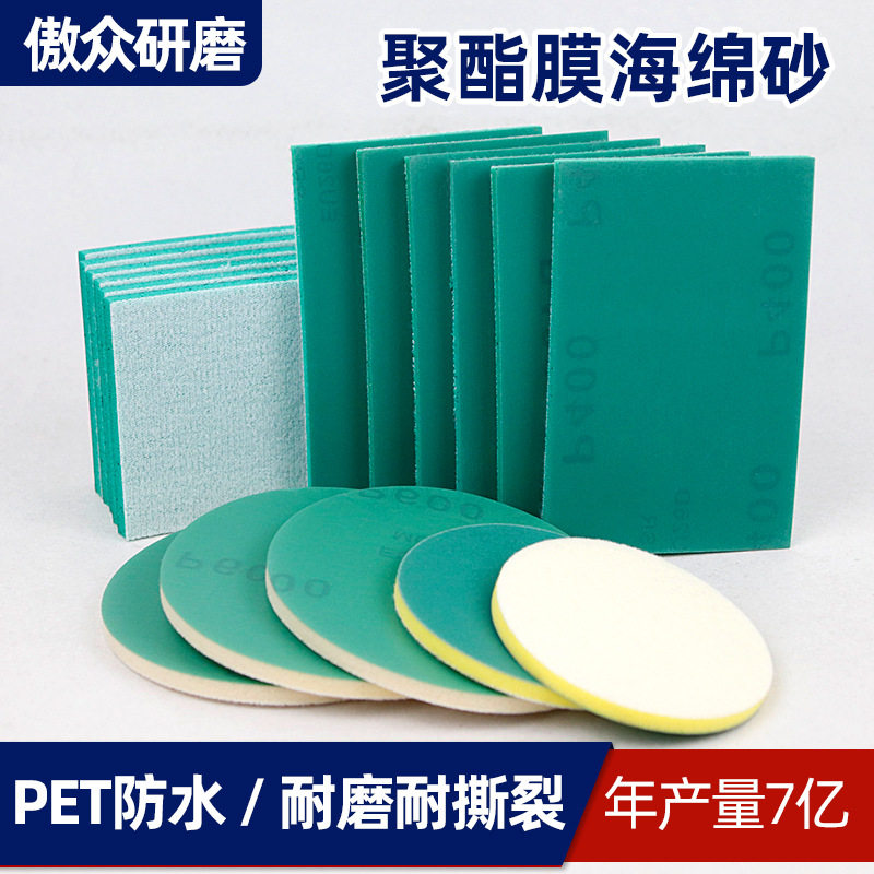 厂家定做海绵砂纸 绿色聚酯膜汽车游艇面漆打磨海绵砂纸