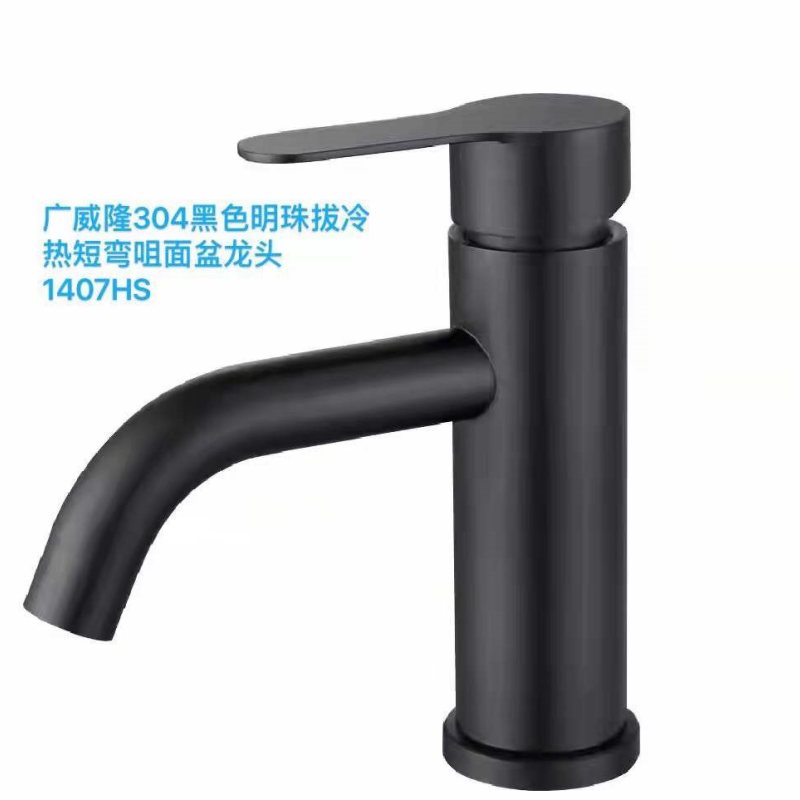 广威隆304黑色明珠拨冷热短弯咀面盆龙头(1407-HS黑色)