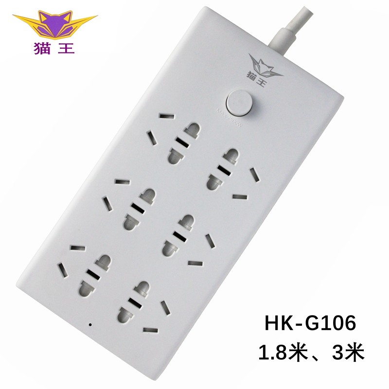 猫王国标插座面板插排家用插座多功能多空位两插三插带线排插HK-G106