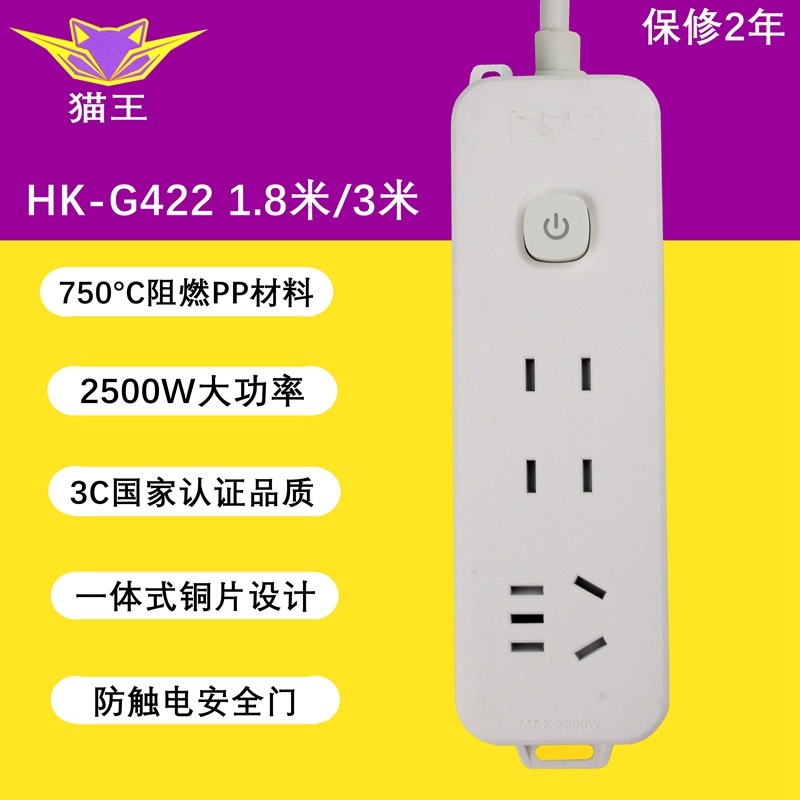 猫王国标插座面板插排家用插座多功能多空位两插三插带线排插HK-G422