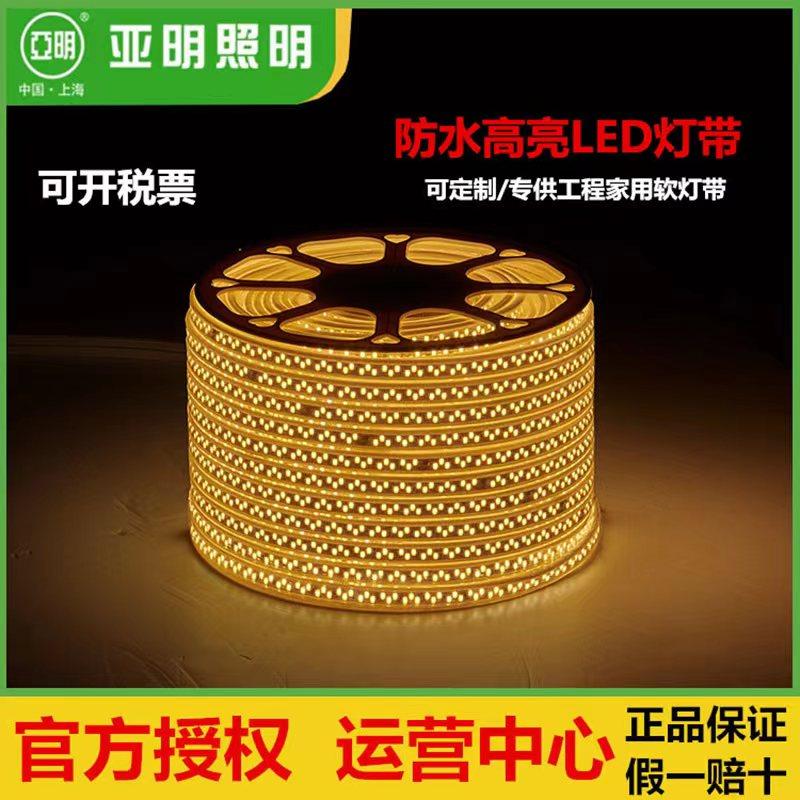 上海亚明照明LED灯带条工程工地塔吊防水超亮软灯条220V白光120珠暖光三变色变光180珠双排灯带