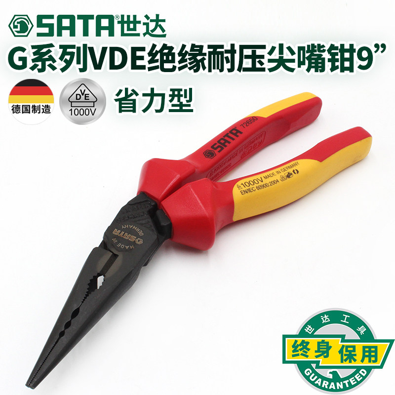 世达G系列省力型VDE绝缘耐压尖嘴钳9"