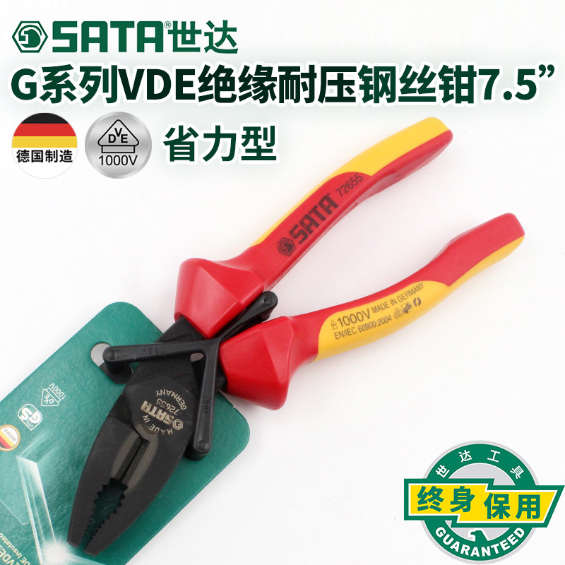 世达G系列省力型VDE绝缘耐压钢丝钳7.5"